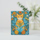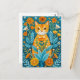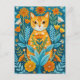 Katze und Blume Folklorekunst Orange und Blau Postkarte