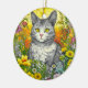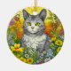Katze und Blume Keramik Ornament