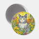 Hübsche, farbenfrohe Katze und Blume gelbe Blumenkunst.