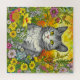 Hübsche, farbenfrohe Katze und Blume gelbe Blumenkunst.