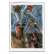 Eine ungeschickte Katze spielt mit Blume in einem Blume-Pot. Burnt Sienna und blaues Monoprint.