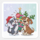 Katze und Hund feiern Weihnachten Quadratischer Aufkleber