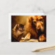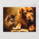 Katze und Hund lesen ein Buch Postkarte