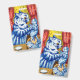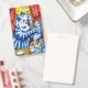 Abzeichen mit Louis Wains Tiermalerei Cat and Her Kittens (1860-1939). Eine anthropomorphisierte blaue Mutterkatze hat eines ihrer blauen Kätzchen. Zwei weitere Kätzchen schlafen in einem Korb. Ein wunderbares Geschenk für Katzenliebhaber und englische Kunst.