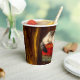 Katze und Kätzchen spielen mit Stuhl Pappbecher