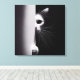 Eine merkwürdige weiße Katze guckt hinter eine Wand mit ihren Whiskers und Pfoten vor einem dunklen Hintergrund