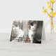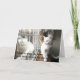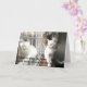 Niedliche, graue Katze und hübsche weiße Katze, die vor dem nach draußen blickenden Fenster zusammensitzt, und die humorvolle Katze zitiert: "Es gibt keinen Ort wie Zuhause, wenn Katzen empfangen werden."