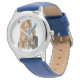 Kinderuhr aus Edelstahl mit blauem Lederarmband