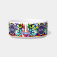 Leckerei deinen Freund zu einem künstlerischen Gemälde, wobei sich sein Name wiederholt. Das atemberaubende geometrische Katzengesicht hat lebendige grüne Augen und ein bunt gefärbtes Muster. Geben Sie einmal den Namen Ihres Haustieres ein und es erscheint automatisch in den vier Kreisen, die um die Seite herum angeordnet sind.