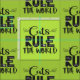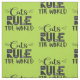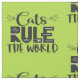 Ein trendiges und hübsches Muster mit den Worten "Katzen herrschen die Welt" in schwarzem Schriftart, mit weißen Flüstern, Katzenkratzern, einer winzigen Maus und einer kleinen Pfote auf einem hellgrünen Hintergrund dekoriert.