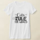 Spaß und ein schöner moderner T - Shirt mit dem Titel "Katzen herrschen die Welt", mit Flüstern, Katzenkratzern, einer winzigen Maus und einer kleinen Pfote dekoriert.