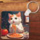 A fluffy white cat, dappled with brown spots, dives headfirst into a mountain of spaghetti. Tomato sauce splatters across its fur and the white tablecloth in a delightful mess. Rendered in a stunning, masterfully balanced composition (think golden ratio!), the illustration evokes the detailed, yet whimsical