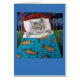 Graue Tabbykatze legt in Bett heraus in der Nacht mit ihren Tatzen, die auf gedreht hinunter Blatt stillstehen, die breiten Augen sich öffnen. Ihre Steppdecke wird mit Bildern der Schwimmenfische gefüllt