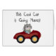 Eine Katze in einem roten Auto und in einem Text, der "diese coole Katze liest, ist gehende Plätze!" auf Katzenentwurfst-shirts, Bechern, Karten, Aufklebern, Taschentaschen, keychains und anderen iems.