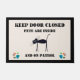 Behalt die Tür geschlossen. Schutztür für Katzen in geschlossenen Räumen. Haustiere drinnen." Haustiere auf Patrouille.