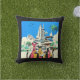 Kopfkissen in einer Illustration von drei stilvollen, als Touristen stehend gekleideten Katzen vor einer futuristischen Stadt. Die Architektur erinnert an die Science-Fiction-Ästhetik der Mitte des Jahrhunderts. Die Katzen halten Kameras, Karten und tragen Lanyards, was ein Abenteuer nahe legt. Palmen und ein leuchtend blauer Himmel sorgen für eine angenehme Urlaubsatmosphäre.