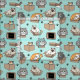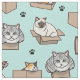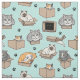 Hier ist eine Vielzahl von Katzen in Kisten verschiedener Größen gequetscht, denn wenn es passt, sitze ich. Dieser Stoff ist in Grautönen, Kalico, Tabby und Siam gehalten! Sie können auch die aquamarine Hintergrundfarbe ändern. Es ist das richtige Muster für jeden Liebhaber von Haustieren und macht jede Oberfläche niedlicher!