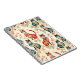 Notebook in einem Wasserfarbenmuster in flüssiger Form, wirbelnde Pinselstriche, inspiriert von chinesischer Kunst, in Farbtönen wie Rot, Blau, Grün und Schwarz, harmonisch mit stilisierten Blätter.