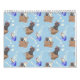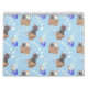 Katzen in Kiste und Milchfallen auf blau Kalender