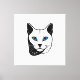 Katzen Kopf in Schwarz-Weiß Blaue Augen + Text Leinwanddruck