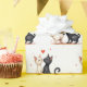 Schwarz-Weiß-Katzen tanzen langsam miteinander, mit Herzen um sich herum, abgeschieden auf Weiß