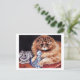 Eine schöne Kunstpostkarte mit einem Tierportrait von zwei Katzen von Louis Wain (1860-1939), einem englischen Künstler. Eine graue Katze und ein orangefarbenes, langhaariges Kätzchen neben einer Porzellankatze mit humorvollen Ausdrücken.