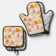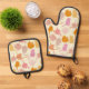Katzen Muster Orange Pink Gelb Ofenhandschuh & Topflappen-Set