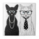 Dieses Ausrüstungsbeschreibungen, die eine schwarze weibliche Katze oben in der Perlenhalskette kleidete und weiße männliche Katze kleidete oben in der dotty Krawatte an.