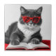 Cat Reading Book Selektive Farbe Rot Splash of Color
