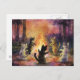 Die KI erzeugte lustige, niedliche, bezaubernde Katzen, die um ein Feuer im Wald tanzten