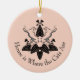 Dieses hübsche Ornament ist mit einem grafischen Motiv versehen, das ein Katzen in einer entspannten Pose mit Blätter und Blume in schwarzer Silhouette zeigt. Passen Sie die Hintergrundfarbe und den Text einfach an.