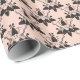 Dieses verspielte Damaskus-Look-Muster auf diesem Packpapier zeigt ein lineares Katzenmotiv in einer entspannten Pose, umgeben von Blätter und Blume in schwarzer Silhouette.