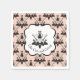 Die hübschen Papierservietten mit einem Damast-Look-Muster und einem linearen Katzenmotiv in entspannter Pose, umgeben von Blätter und Blume in schwarzer Silhouette, lassen Sie den Text und die Hintergrundfarbe leicht anpassen.