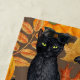 Handgemalte Muster mit schwarzen Katzen, Kürbissen und Herbstblättern. Mix-Media- Digital- und Aquarellmalerei.