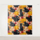 Handgemalte Muster mit schwarzen Katzen, Kürbissen und Herbstblättern. Mix-Media- Digital- und Aquarellmalerei.