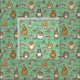 Muster der niedlichen Katzen und anderer Lebewesen auf einem grünen Hintergrund.
