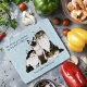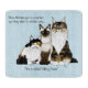 Drei Niedliche Katzen, eine Siam, Maine Coon Tabby und eine Calico Katze sitzen in blauer Umgebung zusammen. Wenn Frauen in ein bestimmtes Alter kommen, fangen sie an, Katzen zu sammeln... das nennt sich "Viele Paws".