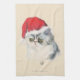 Katzen-Weihnachten, eine niedliche Illustration, die eine persische Katze trägt Sankt Hut kennzeichnet. Hauptfarben: beige, weiß, rot, grau, schwarz und gelb. Das Vorlagenzeichnen wurde mit farbigen Bleistiften durch Künstler © E.D. Siffert gemacht.