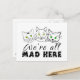 Wir sind alle Mad Hier Text und zeichnete von drei lustigen Katzengesichtern mit gelben und grünen Augen. Horizontale oder landschaftlich orientierte Produkte und Souvenirs