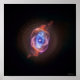 Dieses Bild zeigt einen Planetennebel, der als NGC 6543 bekannt ist, oder das Auge der Katze. In diesem Bild werden die Röntgenstrahlen von Chandra (lila) durch Schockwellen verursacht, während die Winde des sterbenden Sterns mit seiner ausgestoßenen Atmosphäre kollidieren. Die Röntgenbilder wurden in diesem Bild mit optischen Daten von Hubble (rot, grün und blau) kombiniert. | "Smithsonian" und das Smithsonian Logo sind eingetragene Warenzeichen der Smithsonian Institution.