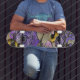 Eine Vorlage, Mischmedien, Katzenentwurf geschaffen unter Verwendung der Collagen-, Zeichnen und Malentechniken. Ein großes Skateboard für Katzenliebhaber.