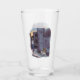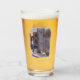 Ein Bierglas mit einem lustigen Cartoon über eine Bettlerkatze, die auf dem Bürgersteig sitzt. Text und Bild können personalisiert sein. Originelle Kunstwerke von DBcartoons.