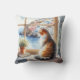 Dekoratorkissen mit Aquarellmalerei einer Katze, die in einem Fenster sitzt und einen Blick auf die farbenfrohen Zuhause des Mittelmeers bietet.