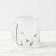 Ein Cartoon, eine japanische Brotkatze, wartet darauf, Goldfisch zu fangen, aber das Wasser ist zu hoch! Ihr Getränk bestimmt die Höhe der Wasserlinie, wie es durch das durchsichtige Glas zeigt. Oranda, schwarzer Moor und Goldfische aus Démekin schwimmen in diesem Teich, der Ihre Tasse ist.