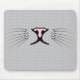Pinkfarbene Katzennase mit schwarzen Flüstern auf weißen Polka-Punkten und grauem Hintergrund.