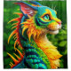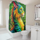 Dieser Duschvorhang hat eine Katzenkreatur darauf.