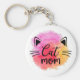 Trendy Schlüsselanhänger für jeden Katzenliebhaber mit der Aufschrift "Katzenmutter" in modernen, schwarzen Schriftzeichen über farbenfrohe Aquarellsträucher und mit hübschen Katzenohren und bezaubernden Whiskers dekoriert.