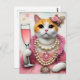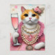 Katzenrosa Kleid mit Perlen mit Drink Postkarte