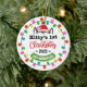 Dieses Personalisierte Cat's First Christmas Ornament ist der perfekte Weg, um die neueste Ergänzung Ihrer Furry Familie in dieser Ferienzeit zu feiern. Unser "Kitty's First Christmas"-Ornament besticht durch eine wunderschön farbene Weihnachtsgrenze, die auf Ihrem Baum funkeln wird. Die bezaubernden Katzenohren oben auf dem Ornament fügen eine charmante Touch hinzu, die Sie jedes Mal zum Lächeln bringt, wenn Sie es sehen.