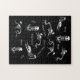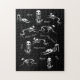 Katzenskelette, die auf einem schwarzen Hintergrund spielen.